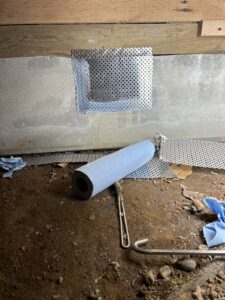 さらに、侵入口封鎖も徹底し、外周の通気口が狭く作業困難な箇所は床下から内側に回り込み、確実に閉鎖しました!